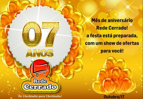 No dia 10/10/2017 a Rede Cerrado completa seu ( 7 anos em Uberlândia ) Sétimo aniversario.Parceria ,trabalho ,foco ,mesmo olhar no futuro. Parabéns Rede Cerrado por mais um ano de vida e prosperidade.Porque juntos somos realmente mais fortes.